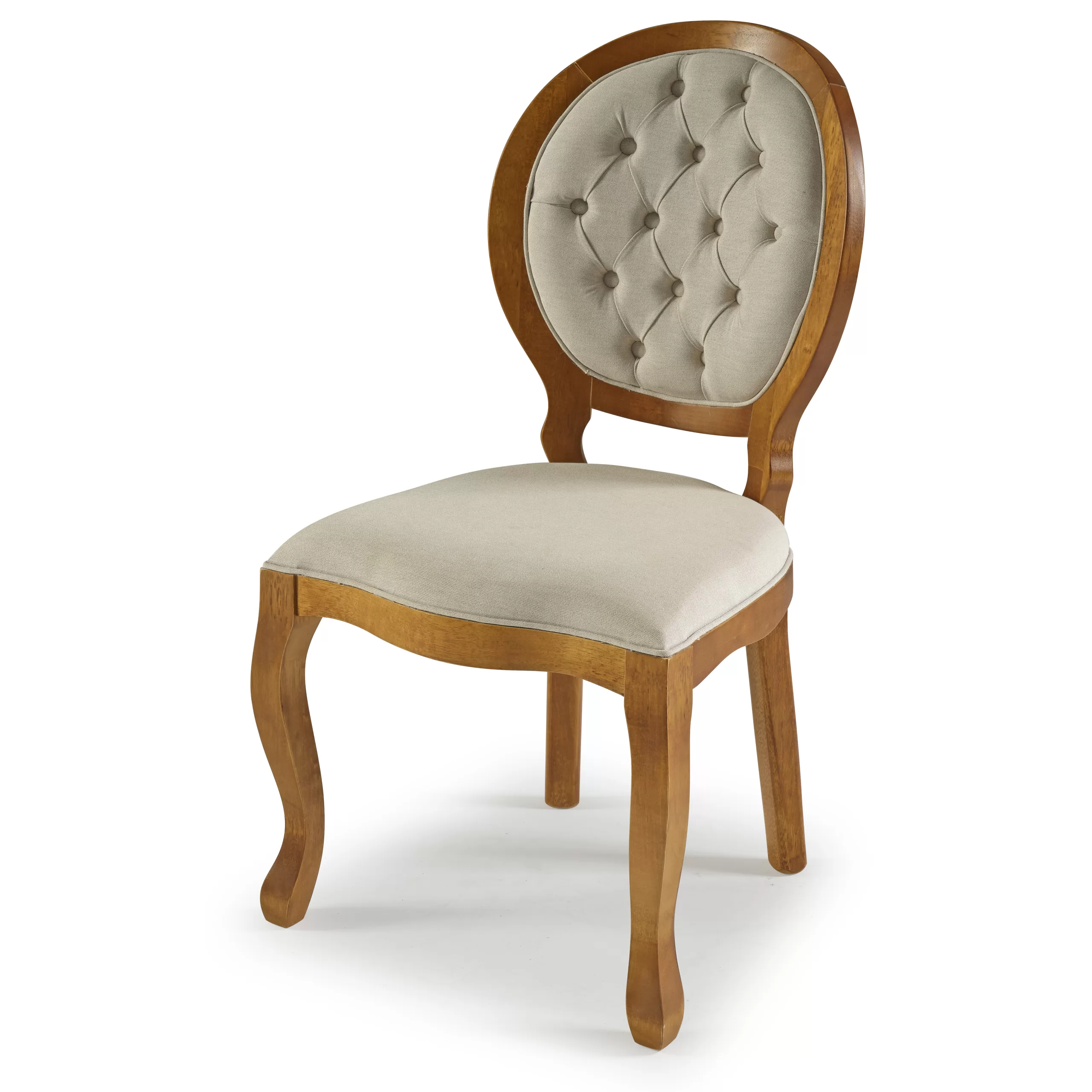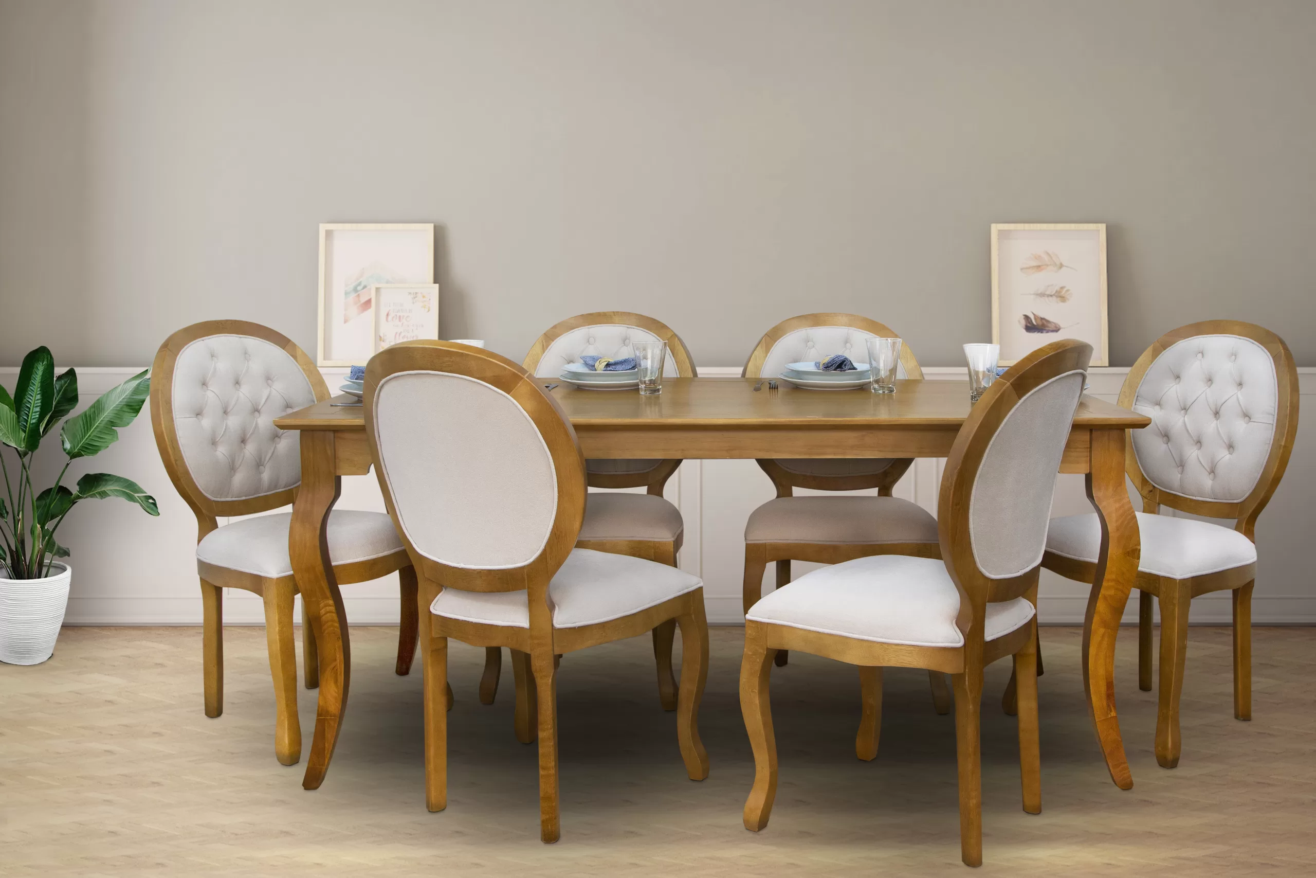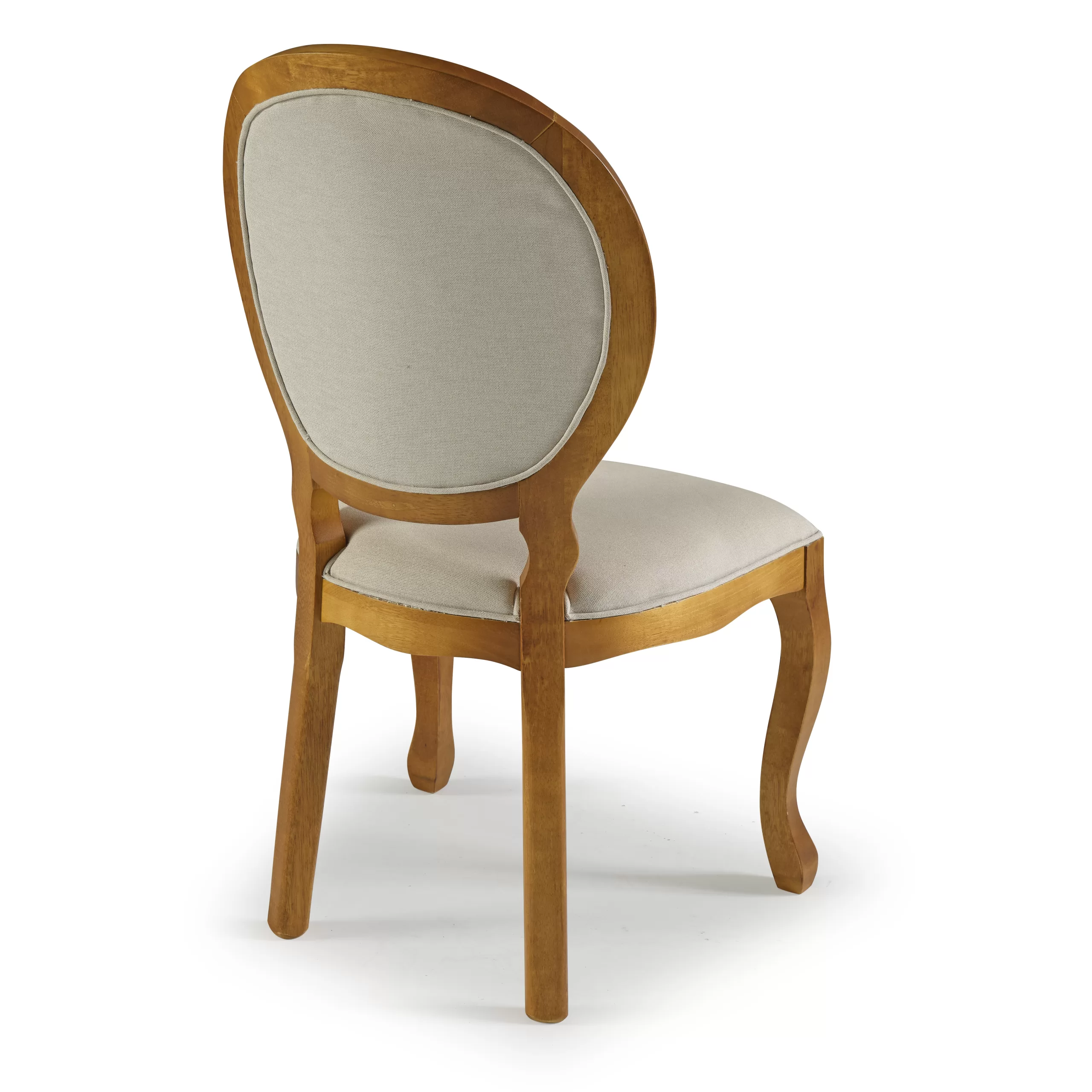 A estrutura em madeira de alta qualidade garante durabilidade e resistência. Já o assento acolchoado, revestido com tecido de toque suave, proporciona conforto até mesmo em longos períodos de uso. Seus pés curvos inspirados no design francês complementam o visual com um toque sofisticado e fluido.