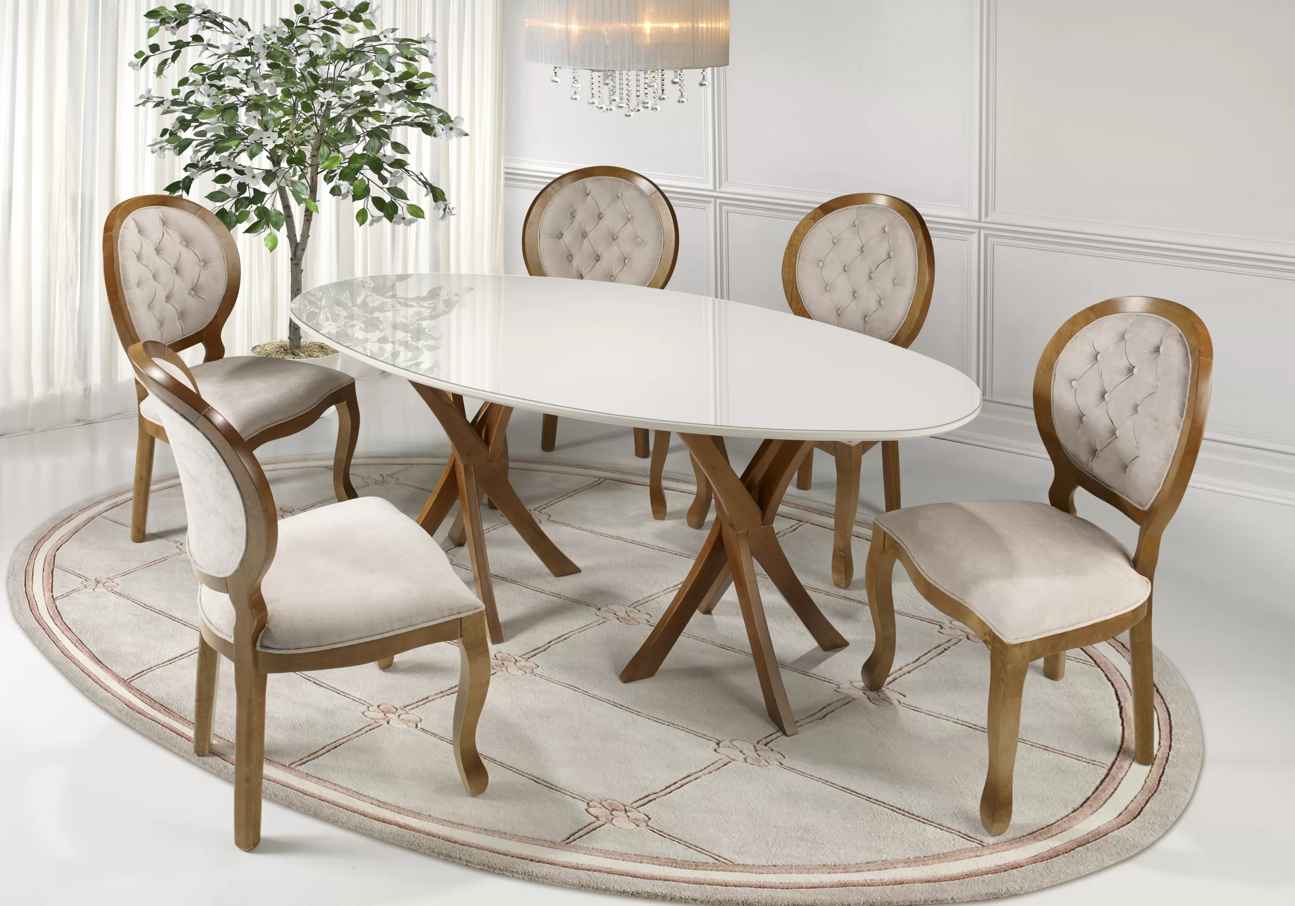 A Cadeira Canadá é a escolha perfeita para quem valoriza um estilo refinado sem abrir mão do conforto. Com encosto em formato medalhão estofado com capitonê, essa cadeira oferece uma estética clássica que se encaixa perfeitamente em salas de jantar elegantes, ambientes corporativos ou até mesmo áreas de recepção.