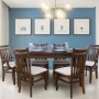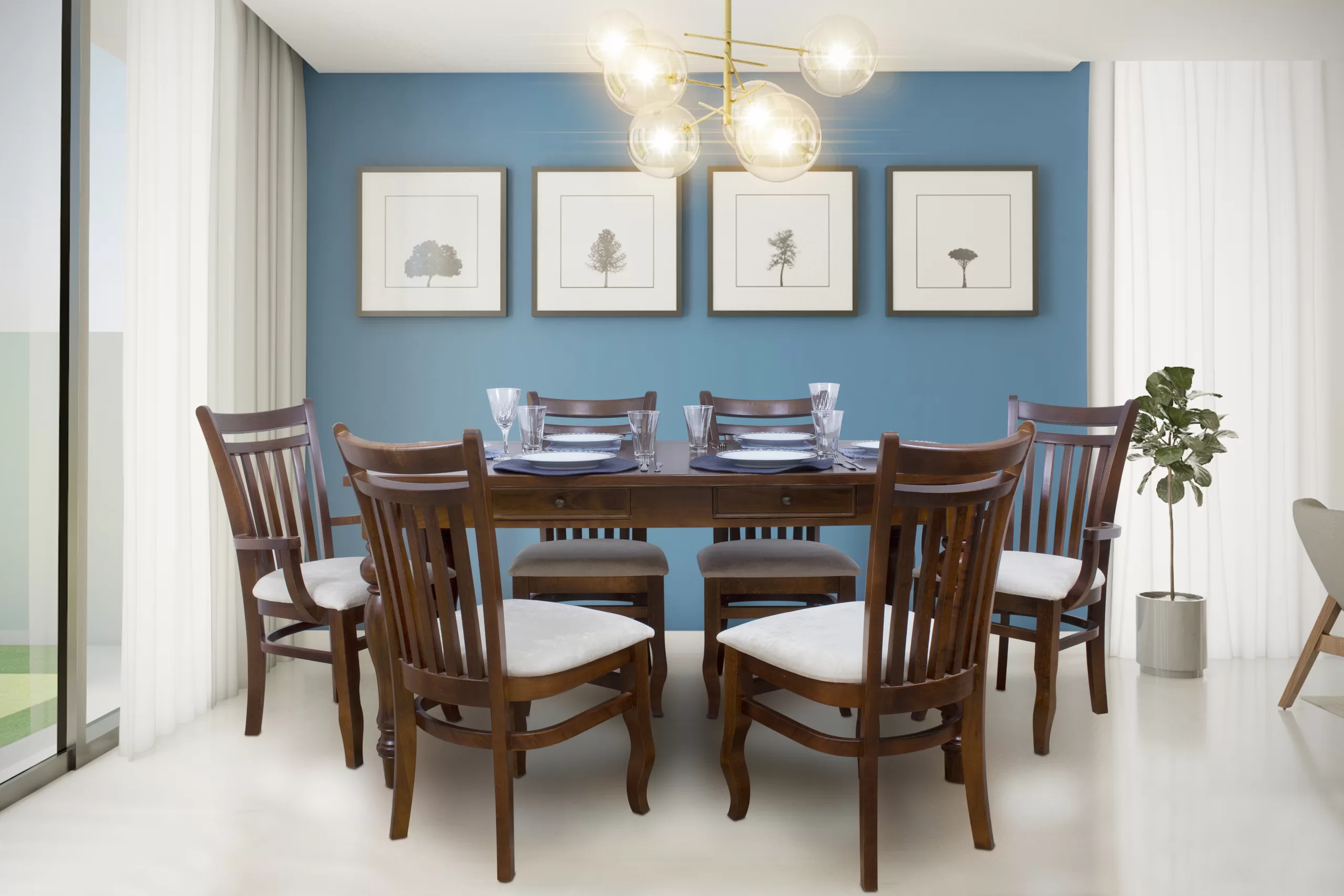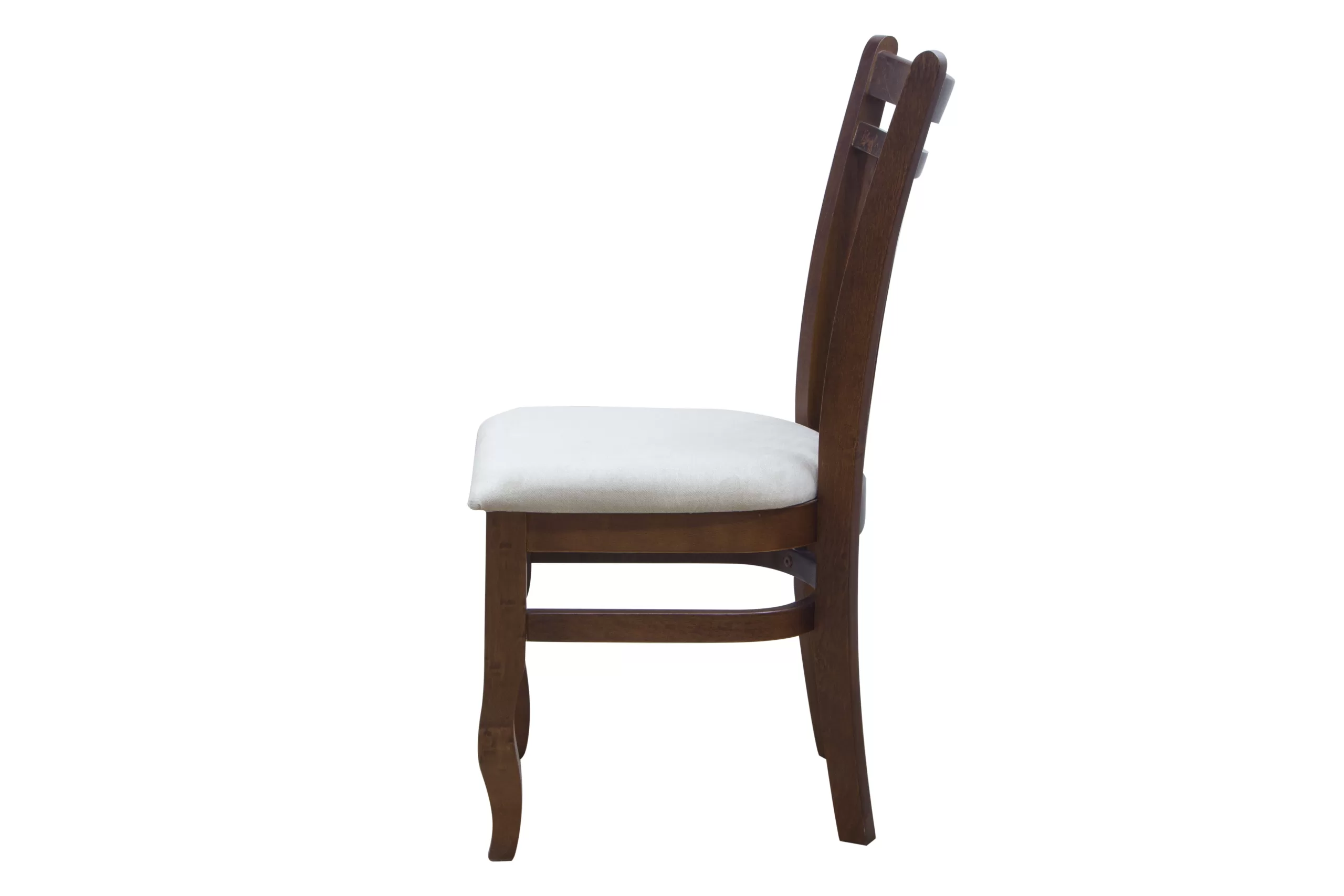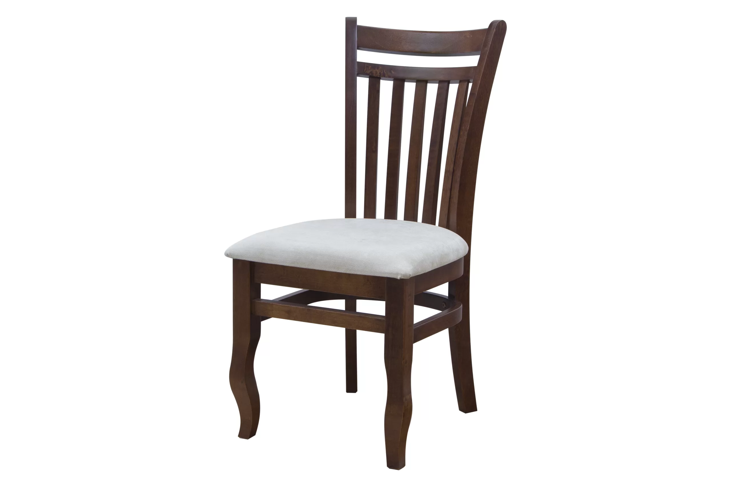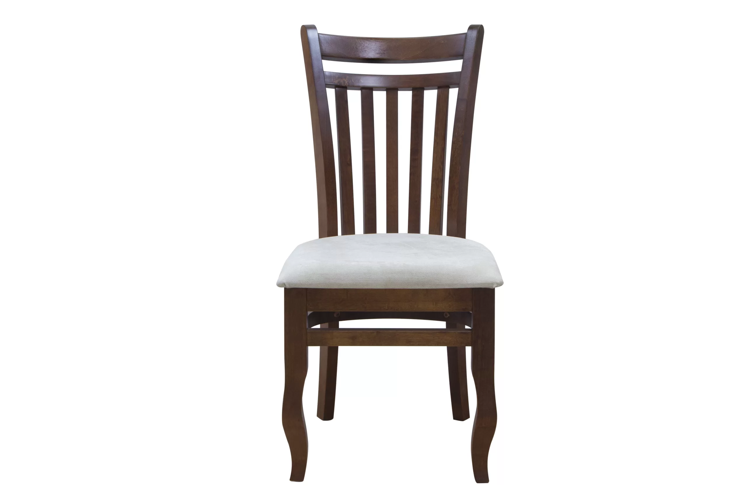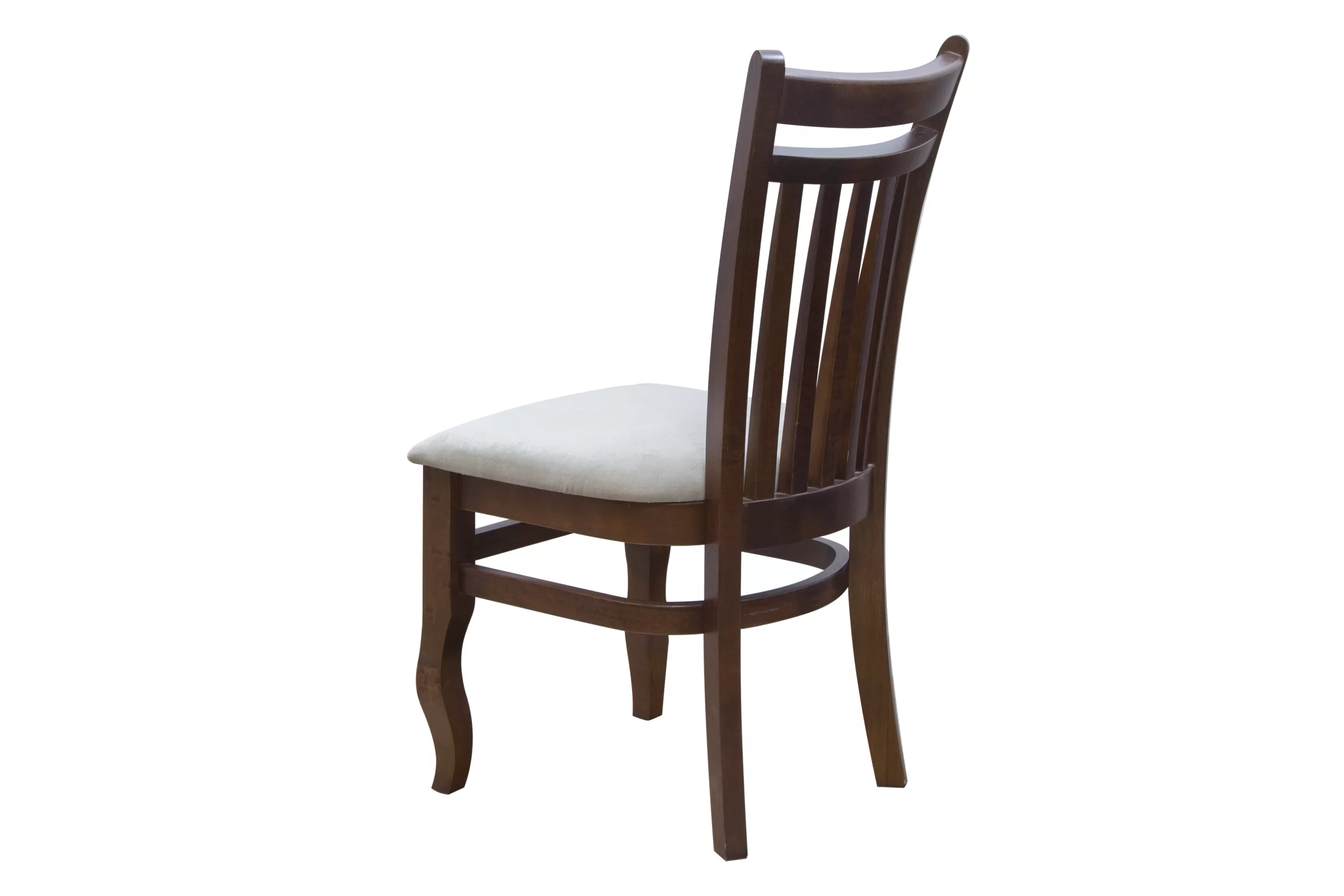 A Cadeira Flórida combina o charme clássico da madeira maciça com a elegância do assento estofado. Seu encosto com ripas verticais proporciona apoio ergonômico, enquanto os pés curvados trazem um toque refinado ao ambiente.