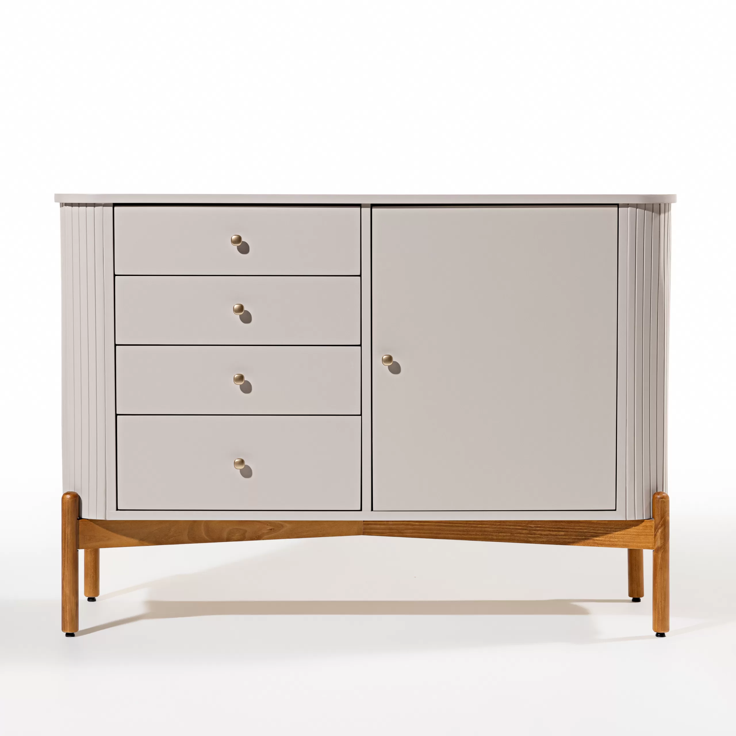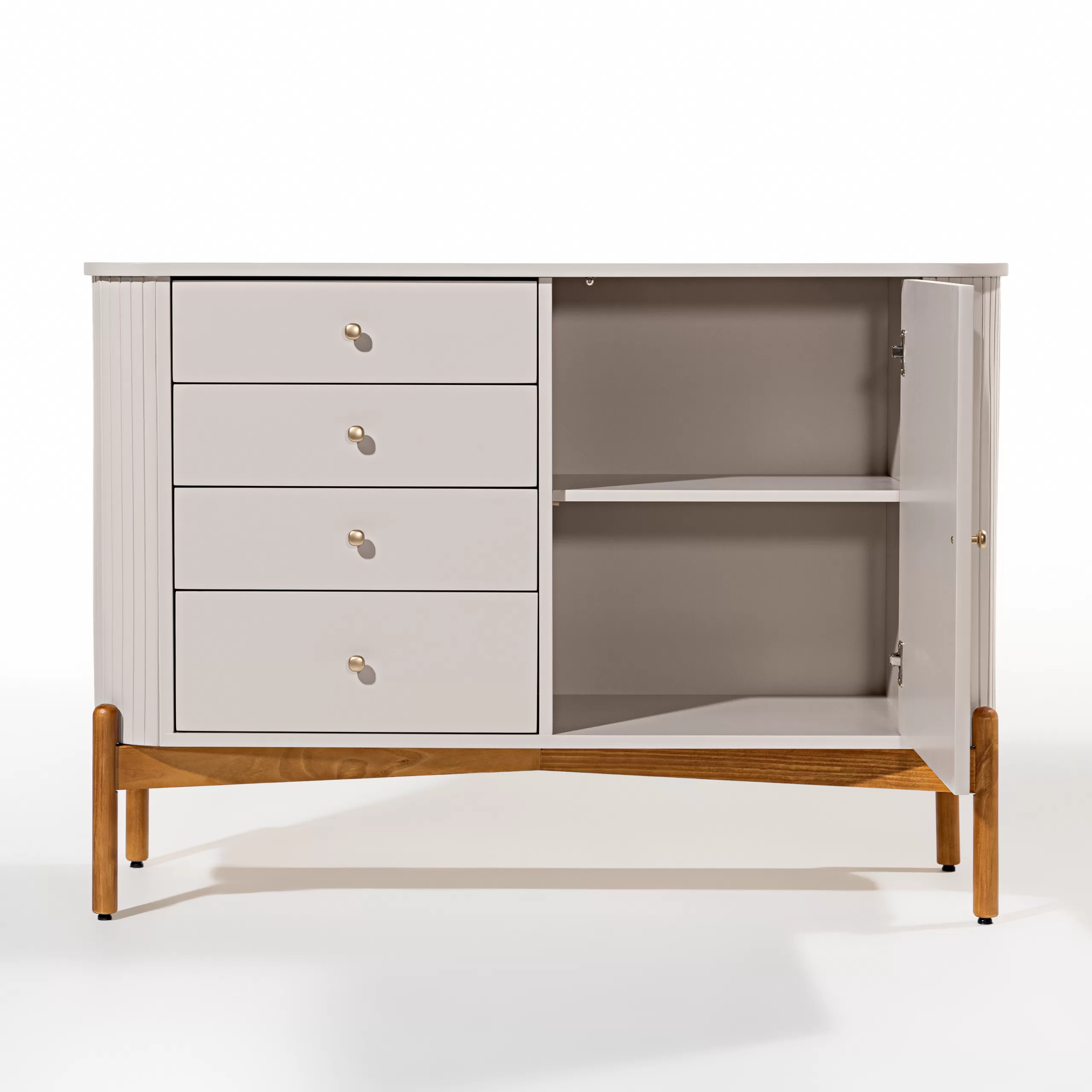 A Cômoda Aurora 4 Gavetas 1 Porta é a escolha perfeita para quem deseja um móvel versátil, funcional e elegante, que valoriza a decoração sem abrir mão da organização.
