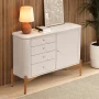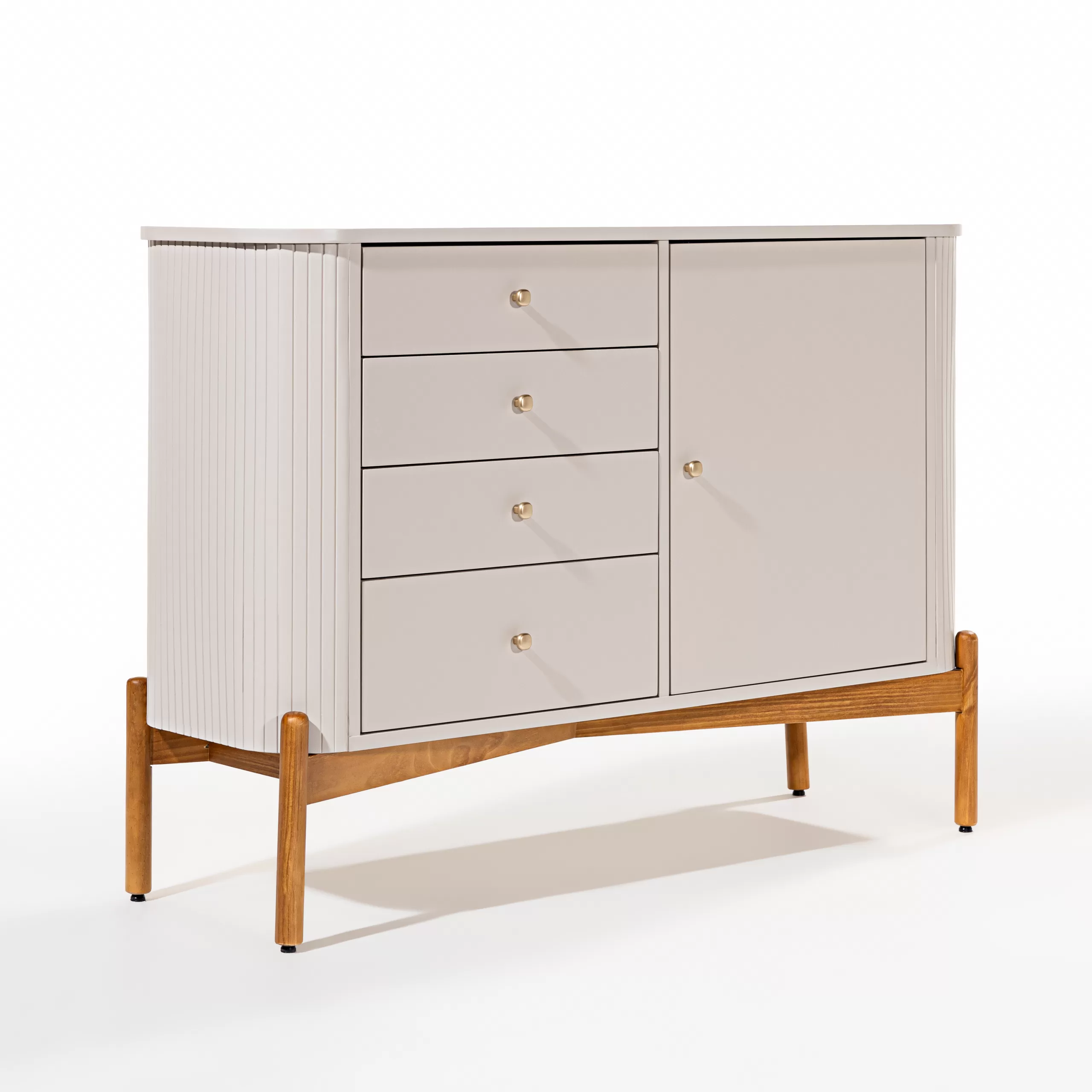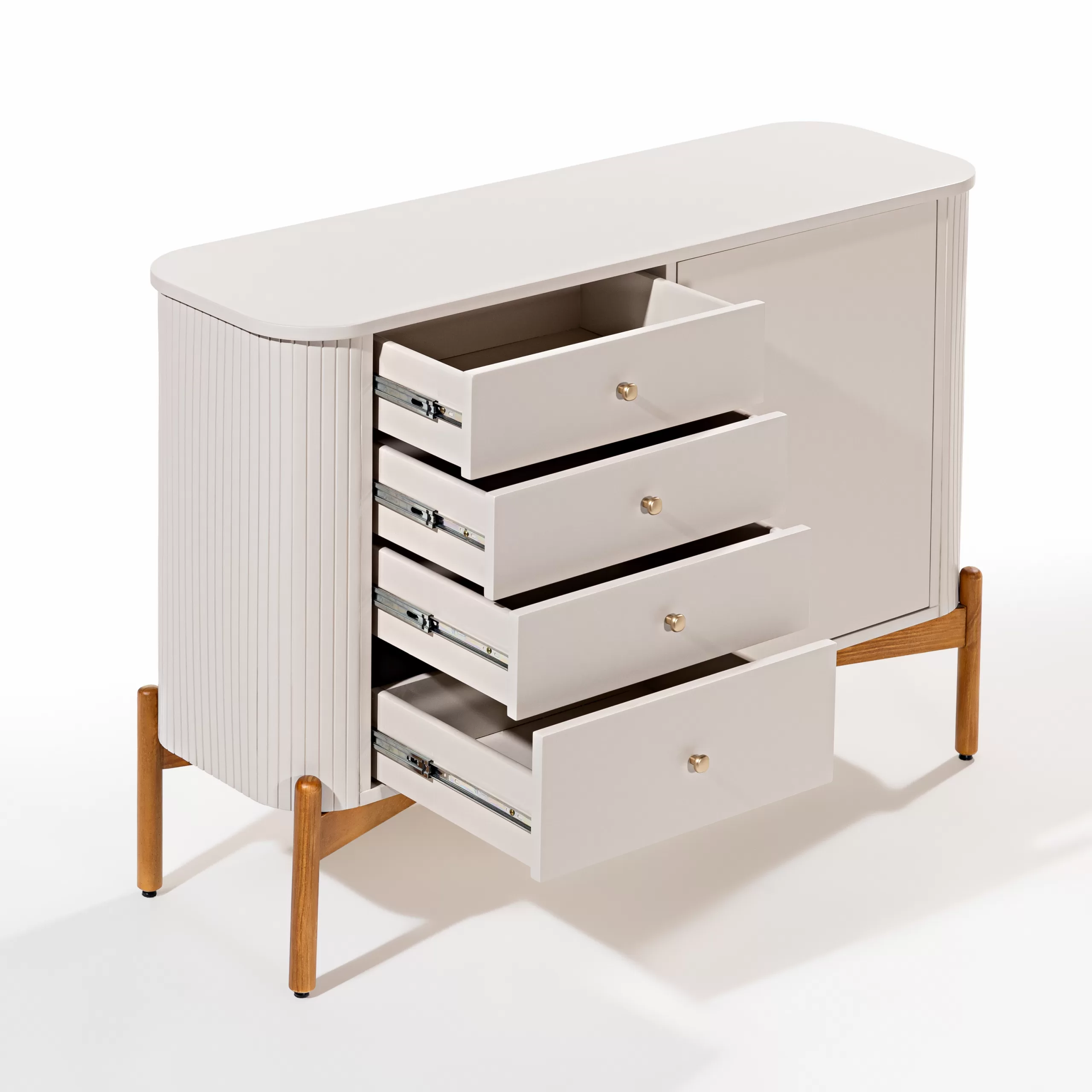 Com quatro gavetas espaçosas e uma porta lateral, a Cômoda Aurora oferece amplo espaço interno para guardar roupas, acessórios, louças ou outros objetos, mantendo tudo sempre em ordem. Sua estrutura resistente garante durabilidade e praticidade no dia a dia.