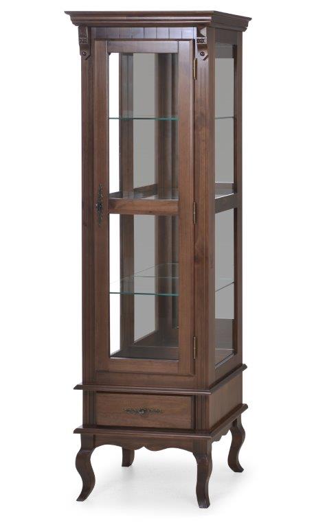 A Cristaleira Flórida com Gaveta une o charme do design retrô com a funcionalidade de um móvel moderno. Fabricada em madeira com acabamento refinado, apresenta porta de vidro para exposição de taças, copos e peças decorativas, além de uma gaveta inferior para armazenamento extra.