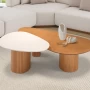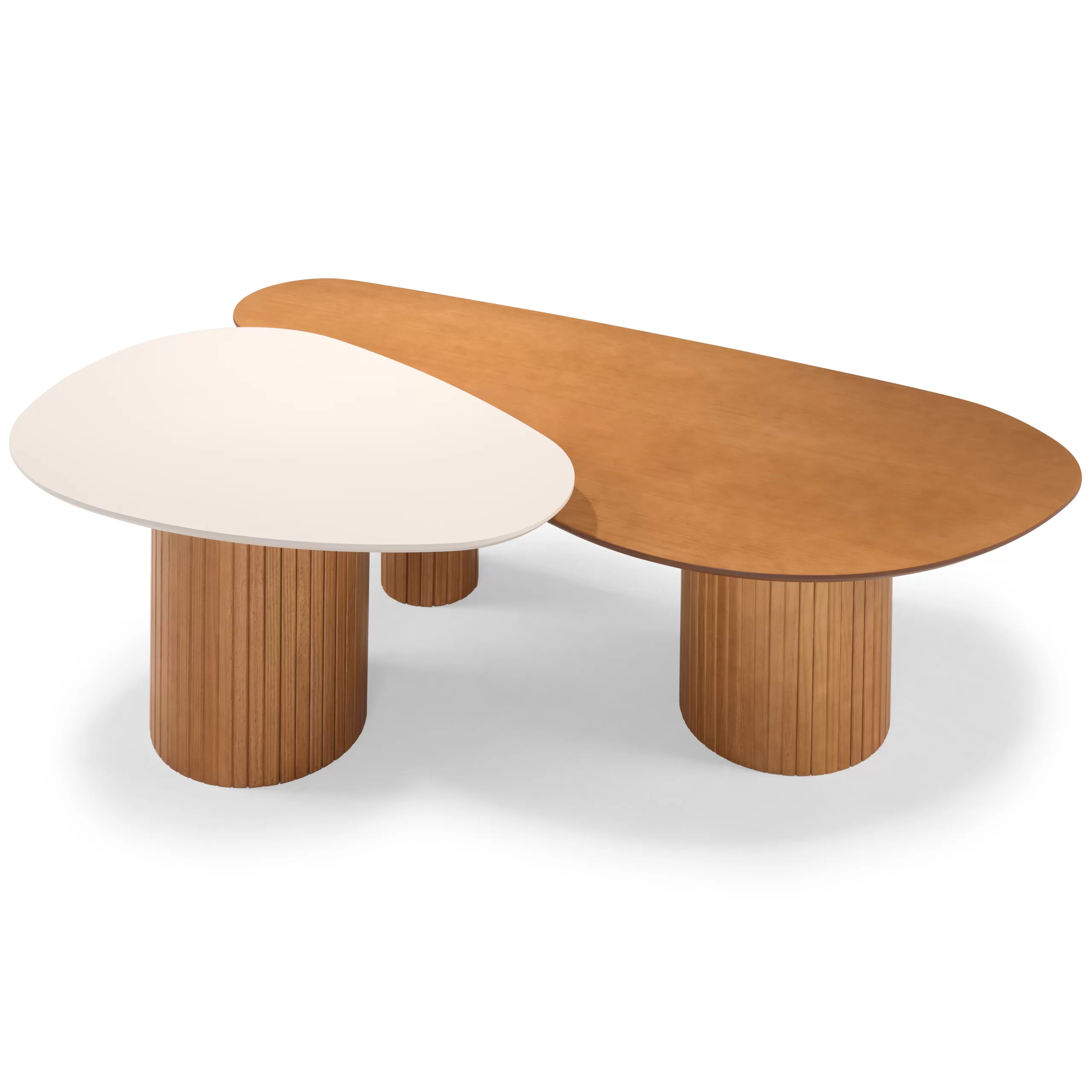 A Mesa de Centro Orgânica Aurora é a união perfeita entre formas suaves e personalidade marcante. Composta por dois tampos assimétricos sobre bases cilíndricas ripadas em madeira, essa mesa dupla traz movimento e autenticidade para a sala de estar. O contraste entre 2 tampos valoriza o design orgânico e proporciona versatilidade para composições elegantes e acolhedoras.