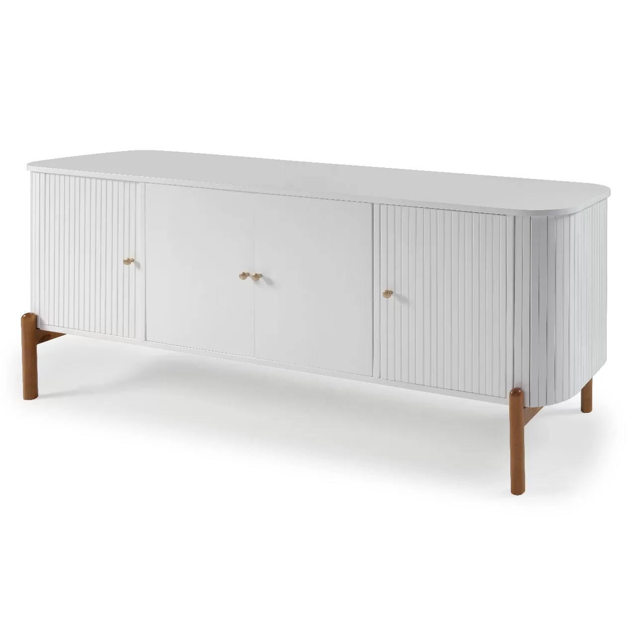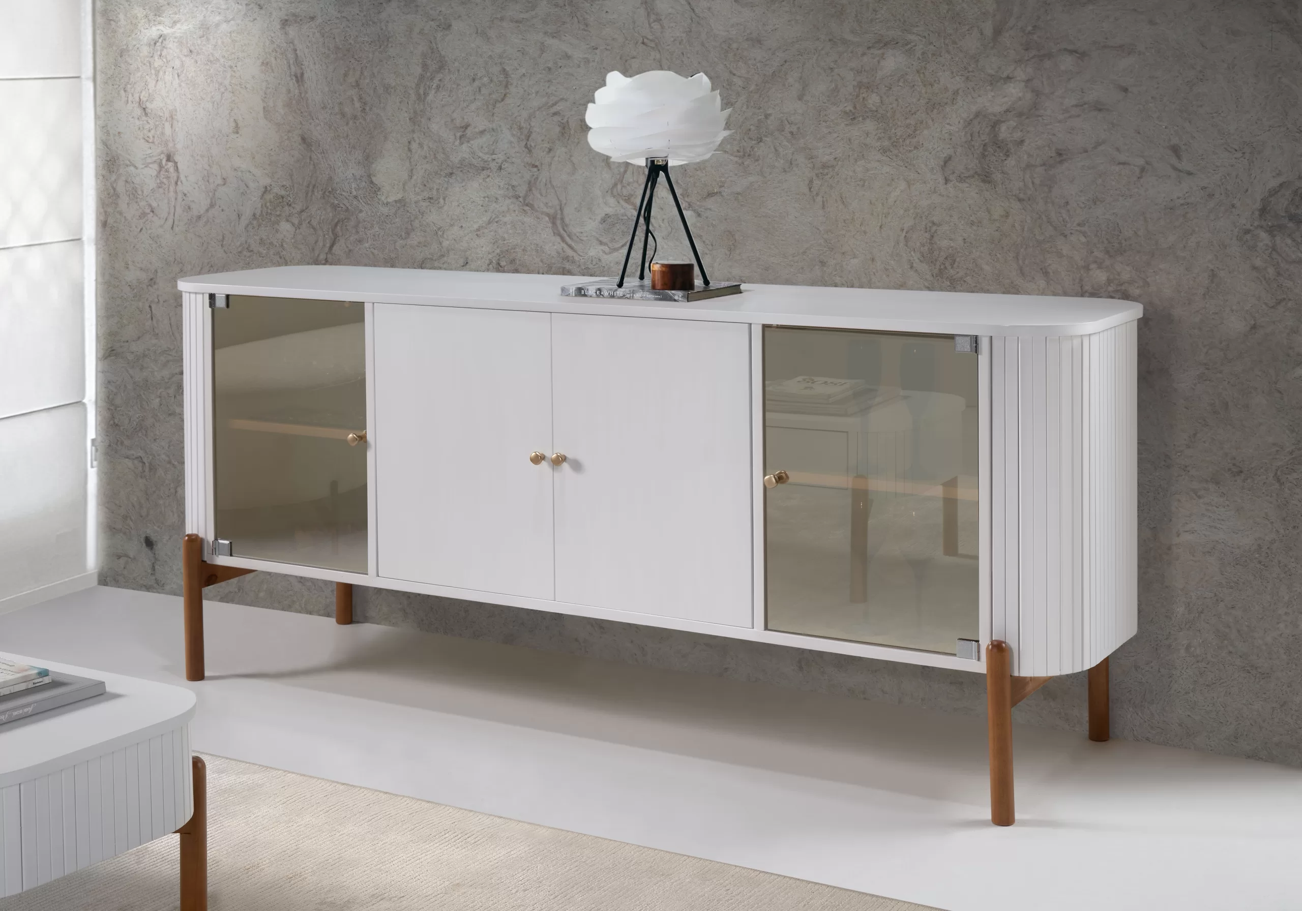 O Balcão Aurora é a escolha perfeita para quem busca elegância e praticidade na decoração. Com um design moderno, acabamento em branco fosco e detalhes ripados nas portas laterais, ele combina com diversos estilos de ambientes. Ideal para salas de jantar, salas de estar ou até mesmo halls de entrada, o Balcão Aurora oferece amplo espaço interno para organizar utensílios, louças ou objetos decorativos. Seus pés em madeira dão um toque natural e sofisticado ao móvel.